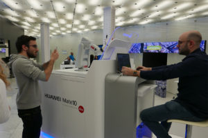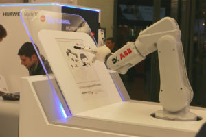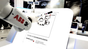 Para la campaña de promoción del Huawei Mate 10 Locuras Inteligentes en el Mobile World Center, EXarchitects creó una experiencia que no dejase indiferente a ningún visitante. Todas aquellas personas que acudían al stand podían hacerse un selfie con el Huawei Mate 10, que lo enviaba a nuestro robot ABB. Entonces nuestro Robot dibujaba sobre un lienzo su retrato que se podían llevar con ellos. Con esta acción creativa se mostraba como con un móvil de última generación con procesador de Inteligencia Artificial podemos enviar las imágenes al robot a través de nuestro software y web app.