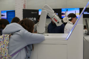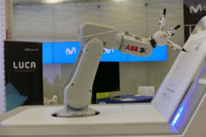 Todas las personas que pasaron por el MWC esos días tuvieron la oportunidad de hacerse un retrato en directo con un robot industrial.